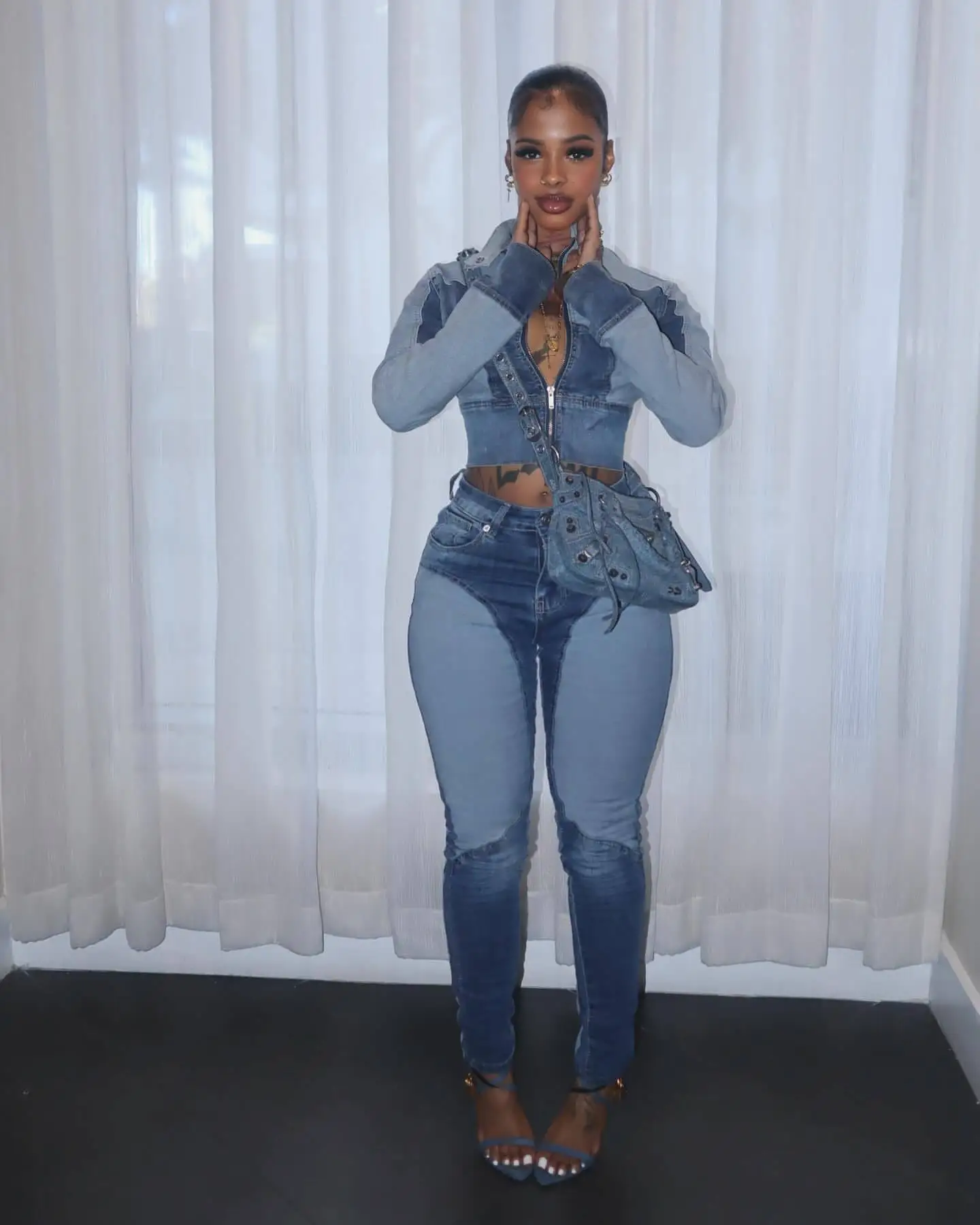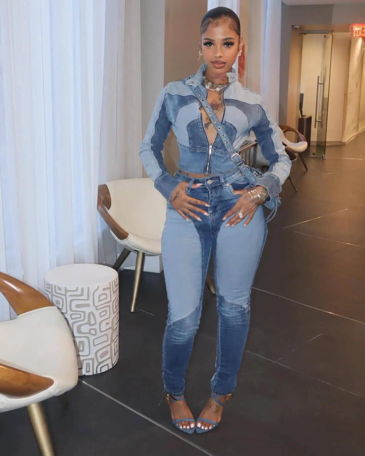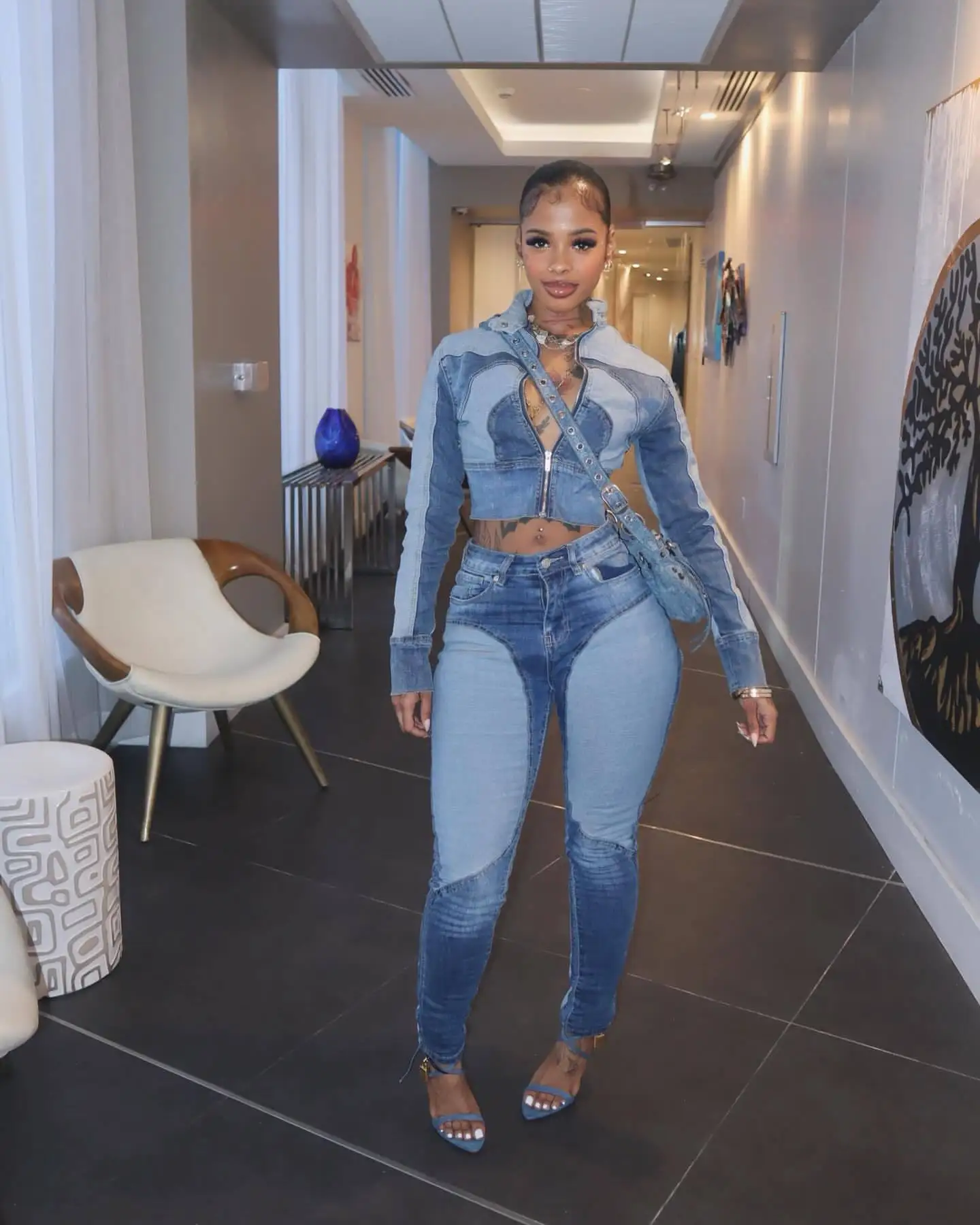 Spoken Dreams: Denim Long Sleeve Crop Jacket + Pants two piece set