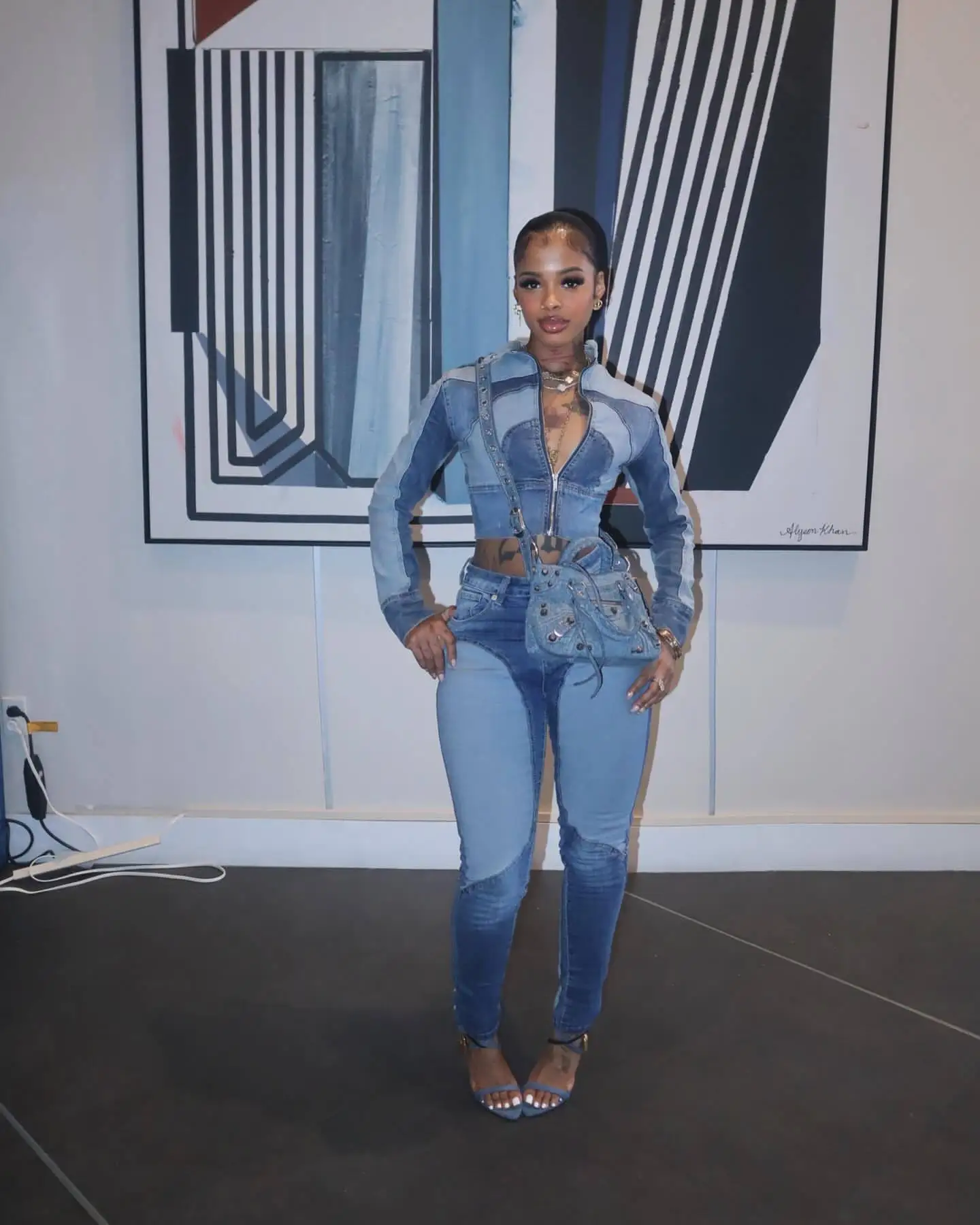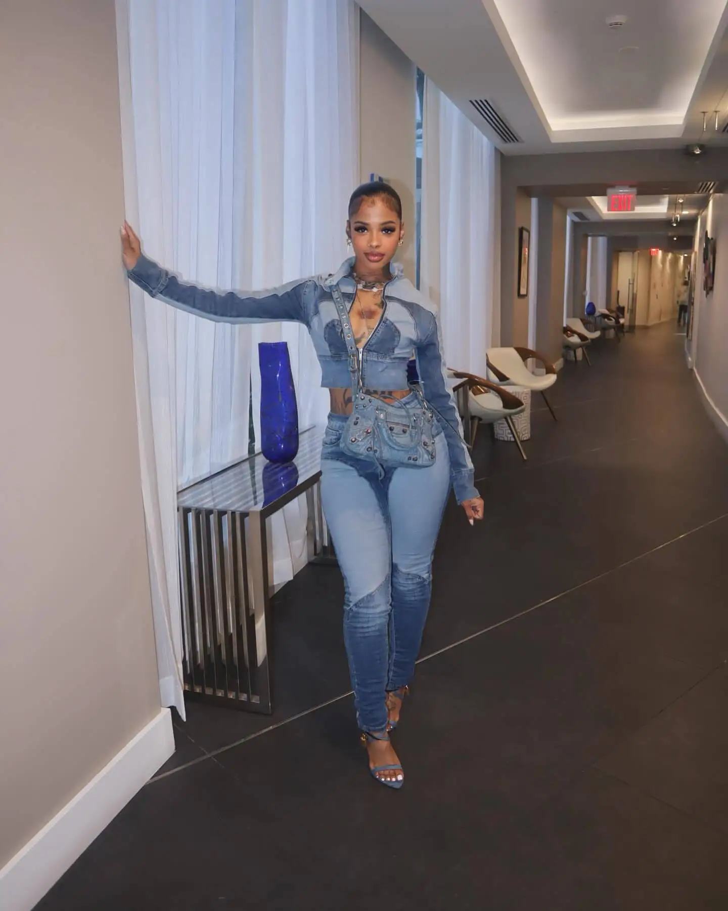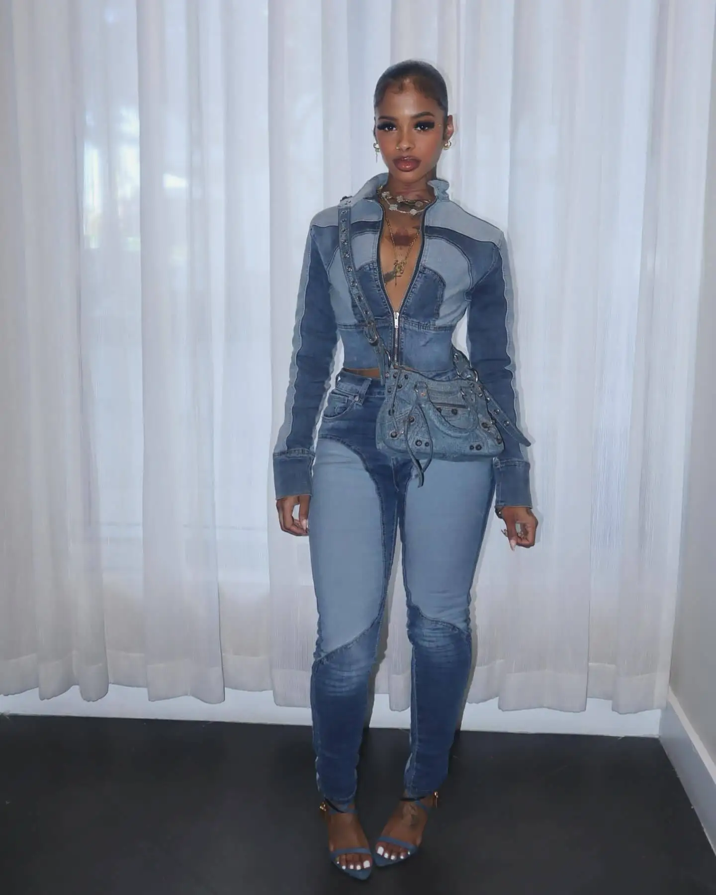 Spoken Dreams: Denim Long Sleeve Crop Jacket + Pants two piece set