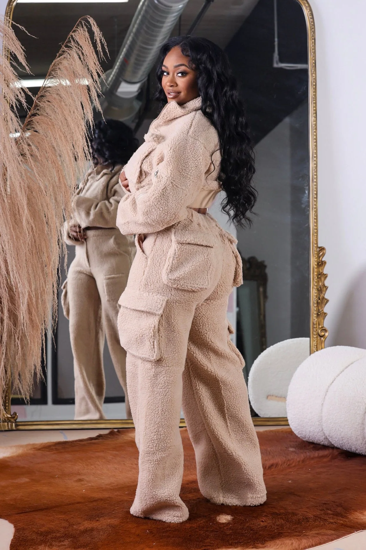 Spoken Dreams: 2 Piece Winter Long Sleeve Short Coat, Cargo Pants Set