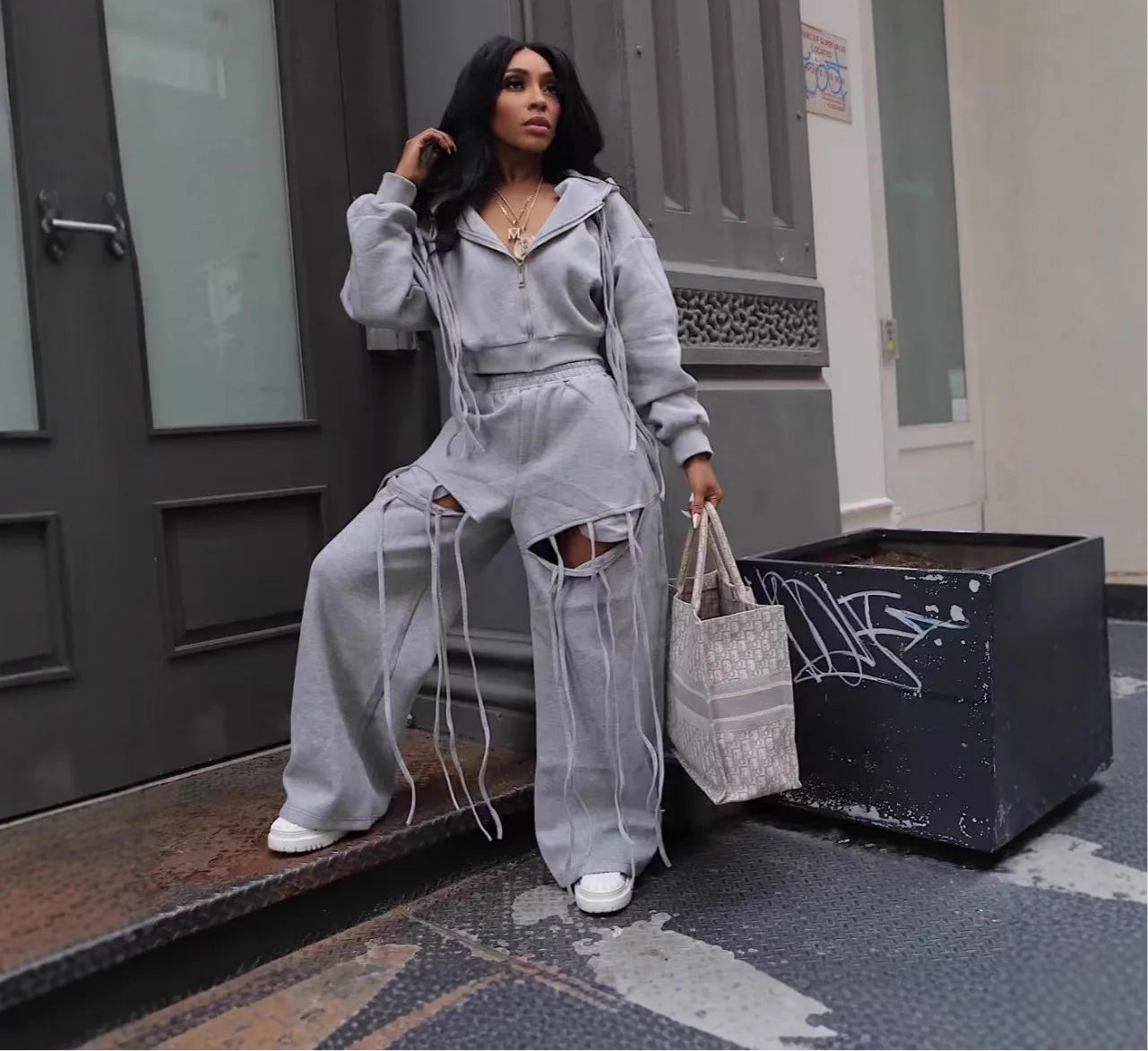 Spoken Dreams: Long Sleeve Hooded Zipper Sweatshirt and Jogger Pants Outfits