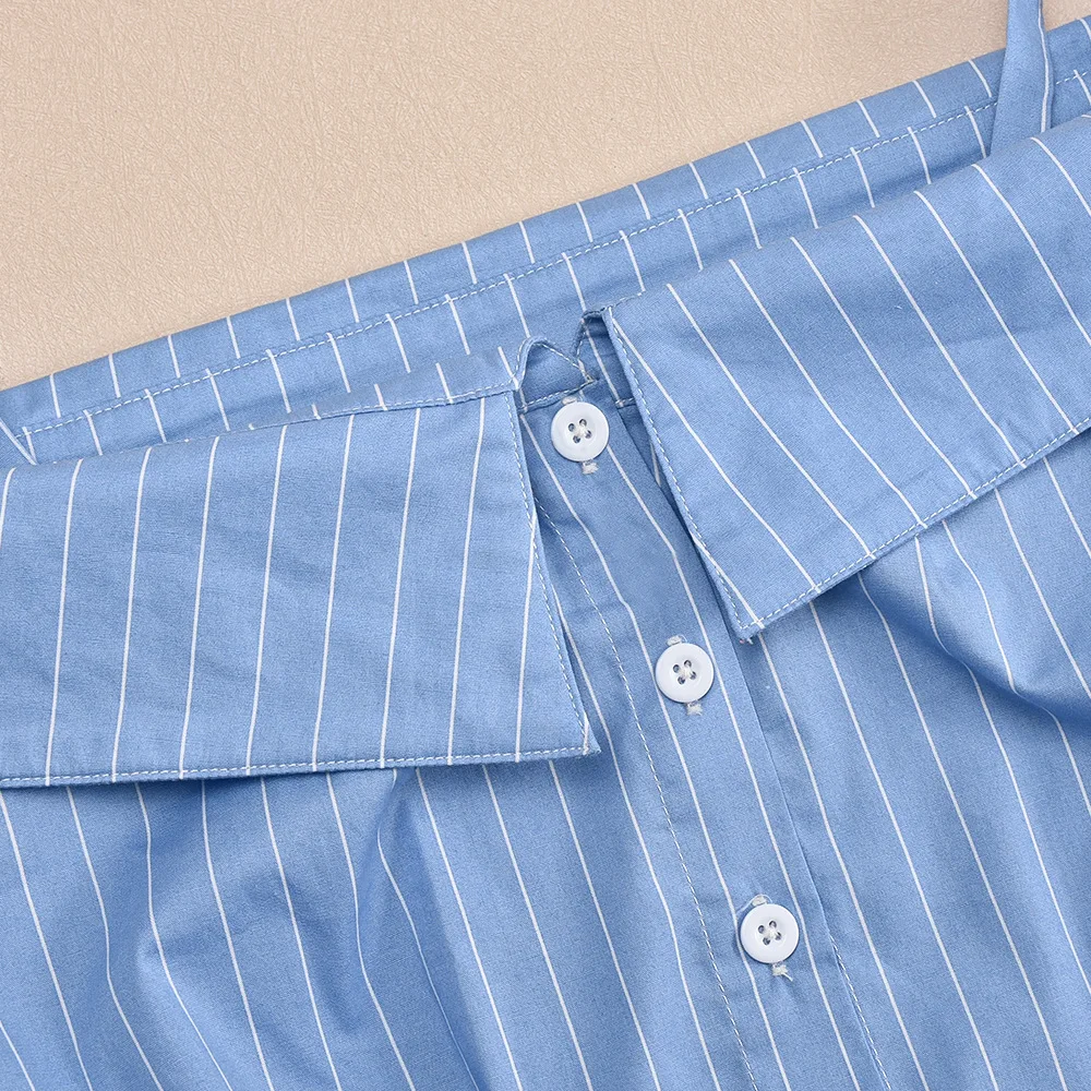 Spoken Dreams: Women Striped Print Blue Blouses