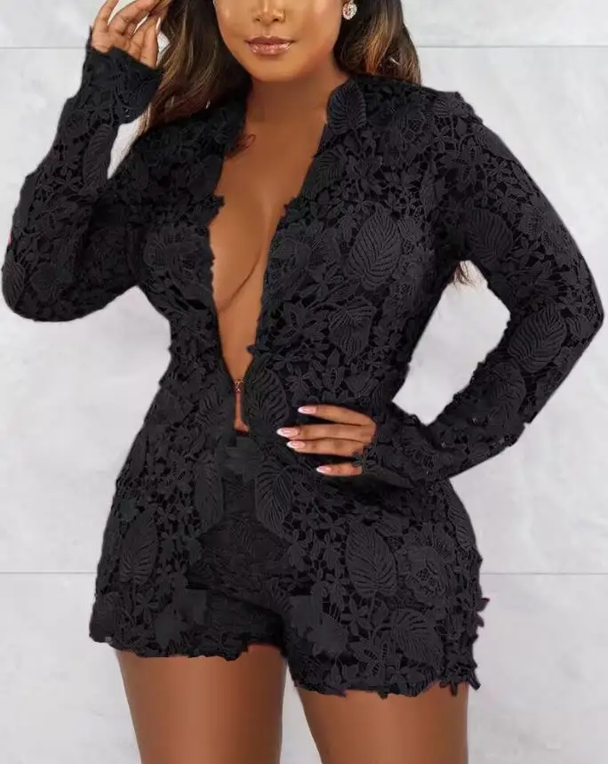 Spoken Dreams: Sexy Guipure Lace Placket Long Sleeve Set
